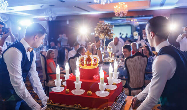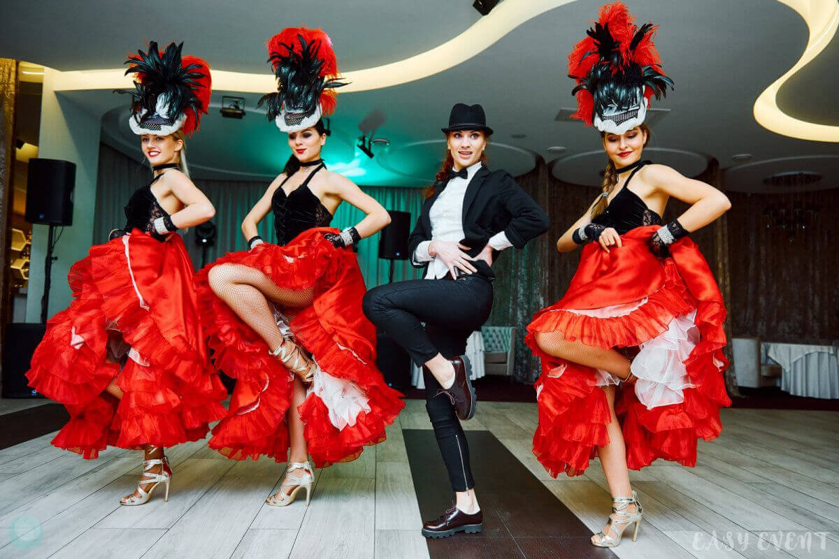 Шоу-программа подчеркивала стиль мероприятия: яркие гимнасты, эффектные танцоры канкана, несравненный саксофонист, вокалисты и энергичный диджей. На десерт подали эксклюзивный трехэтажный торт весом 8 кг. На организацию этого кабаре у нас ушло три месяца и множество разноцветных перьев. Нам удалось сотворить впечатляющее мероприятие под любимую тематику.