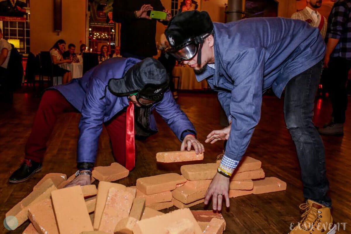 Развлекательная программа состояла из увлекательных конкурсов в стиль праздника: возведение стен из кирпича, раздача еды и стирка, как проверка ключевых навыков для жизни в СССР. Наши ведущие устроили занимательный квест для гостей, кавер-бенд обеспечил соответствующее музыкальное сопровождение, а завершилось всё веселой вечеринкой с диджеем.