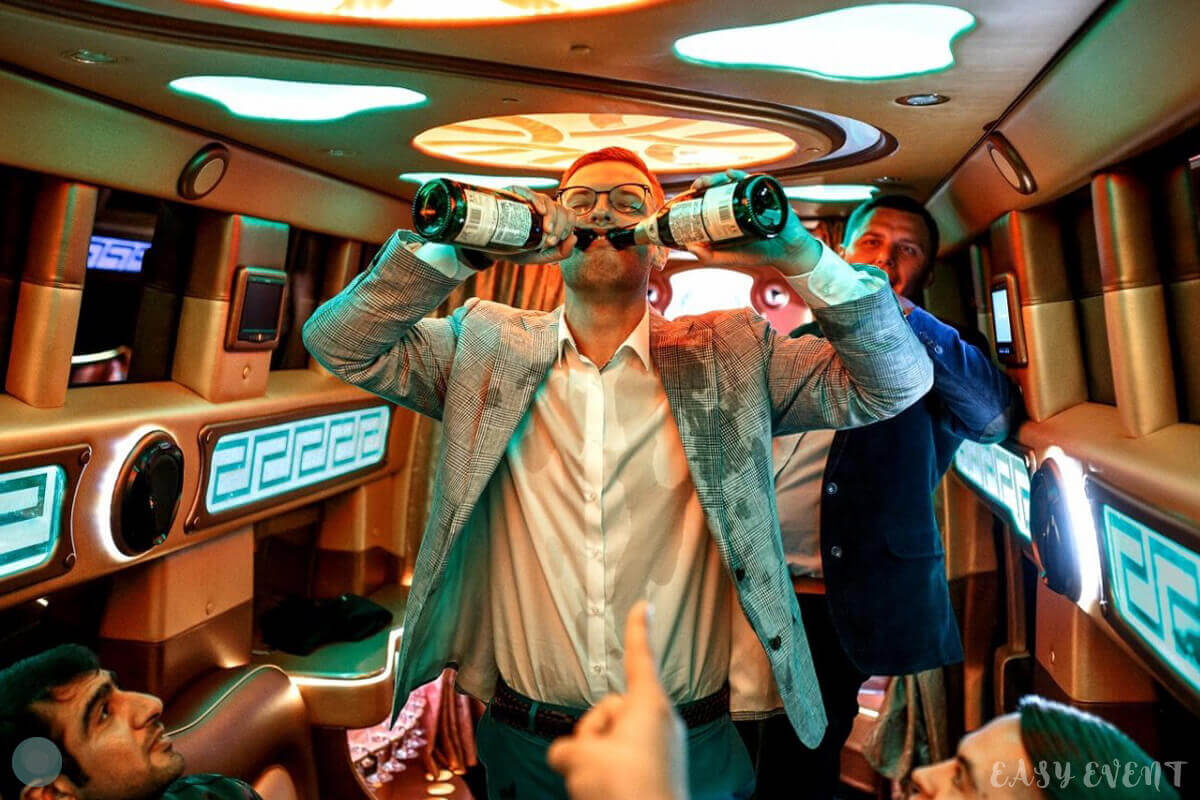 К нам обратились за помощью друзья жениха. Ребята захотели организовать холостяцкую вечеринку, которая бы запомнилась на всю жизнь. Особенностью мероприятия стало совмещение мальчишника и девичника, поэтому присутствовали гости с обеих сторон. Всё началось с того, что влюбленные встретились с друзьями. Они ничего не подозревали и планировали идти в бар. Однако те их «украли» на хаммер-лимузине и увезли развлекаться до утра.
