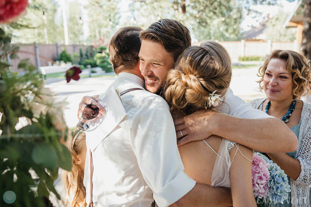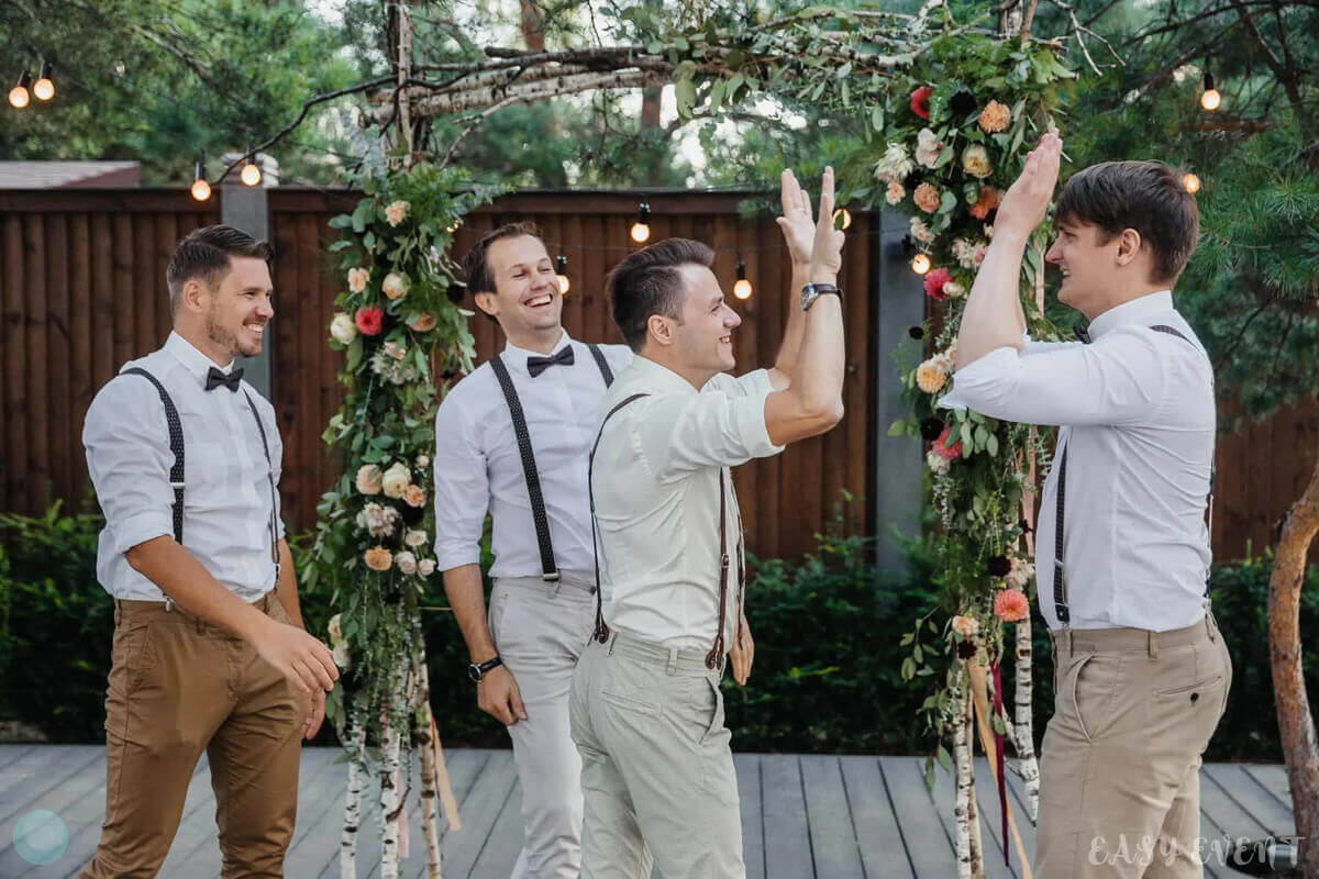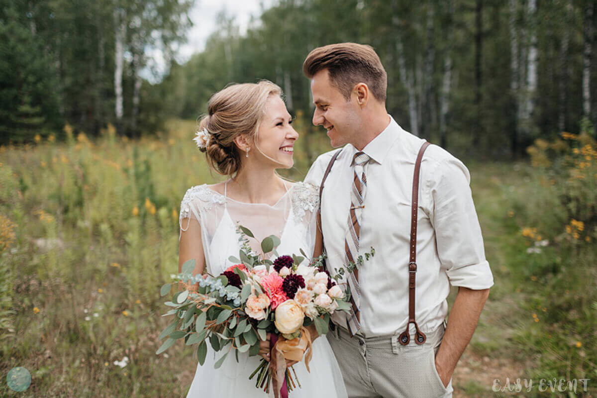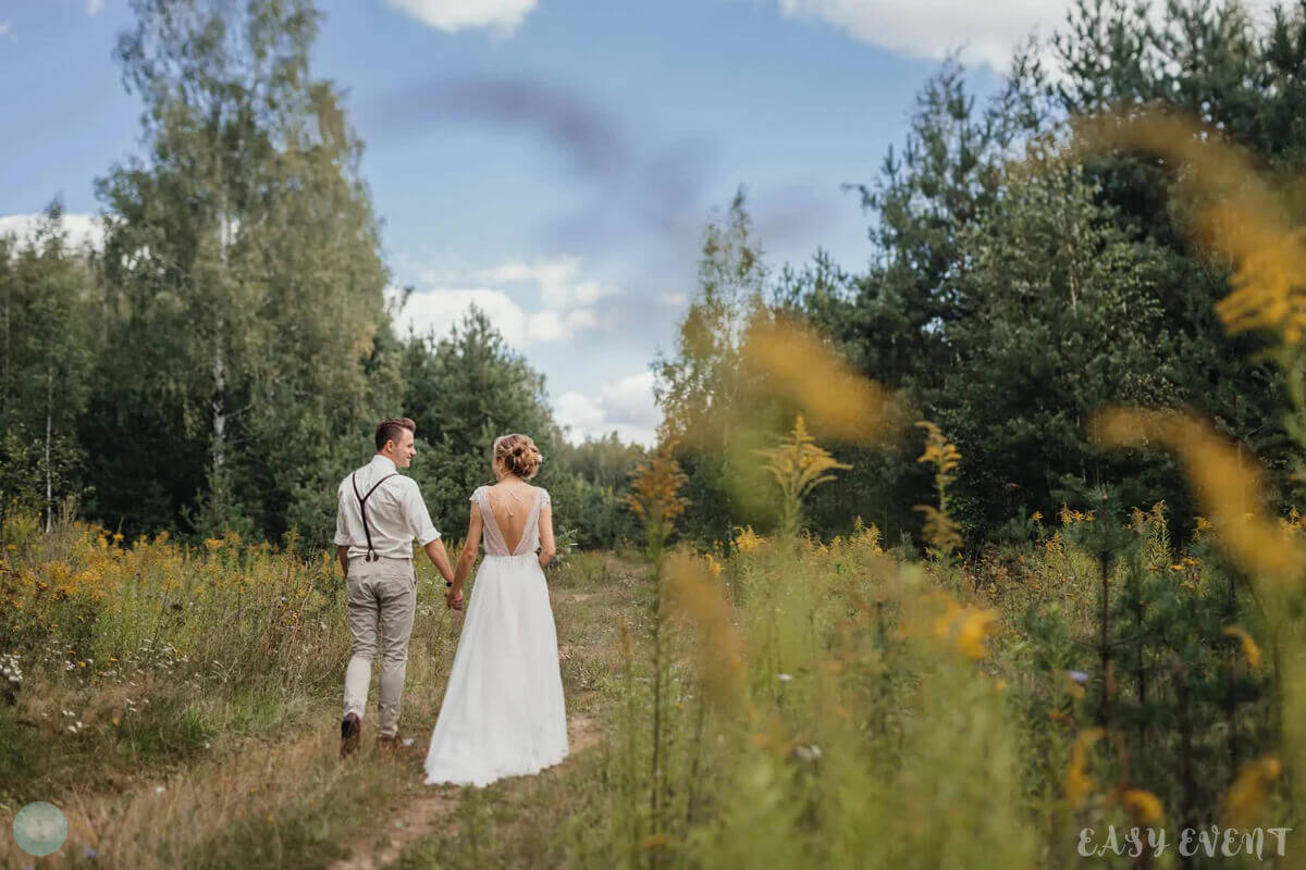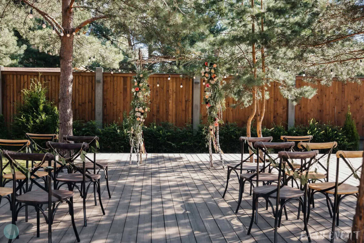 Креативная свадьба для Анастасии и Александра, на подготовку которой у нас был всего месяц. Особенностью мероприятия стала локация для проведения торжества — дом молодоженов и территория вокруг него. Мы выбрали декорации в минималистическом стиле, чтобы подчеркнуть домашний уют. Даже торт был в виде домашнего изделия, очень нежный и аккуратный. На территории поставили нежную арку из ветвей березы, зелени и цветов розовых оттенков, деревья украсили светящимися элементами, а на столах выставили композиции из белого кружева, цветов и свечей.